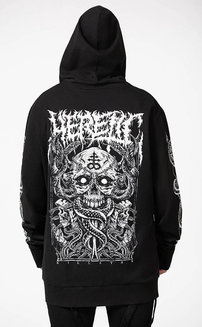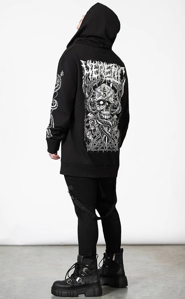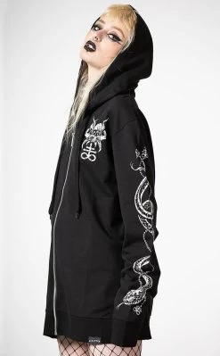 Rug up to f*ck sh*t up in the Anders Zip Up Hoodie. This fitted, longline hoodie features statement contrast prints on the back, sleeves and chest, securing with a full-length zip. The hood is oversized and adjusts with pull strings at the front.