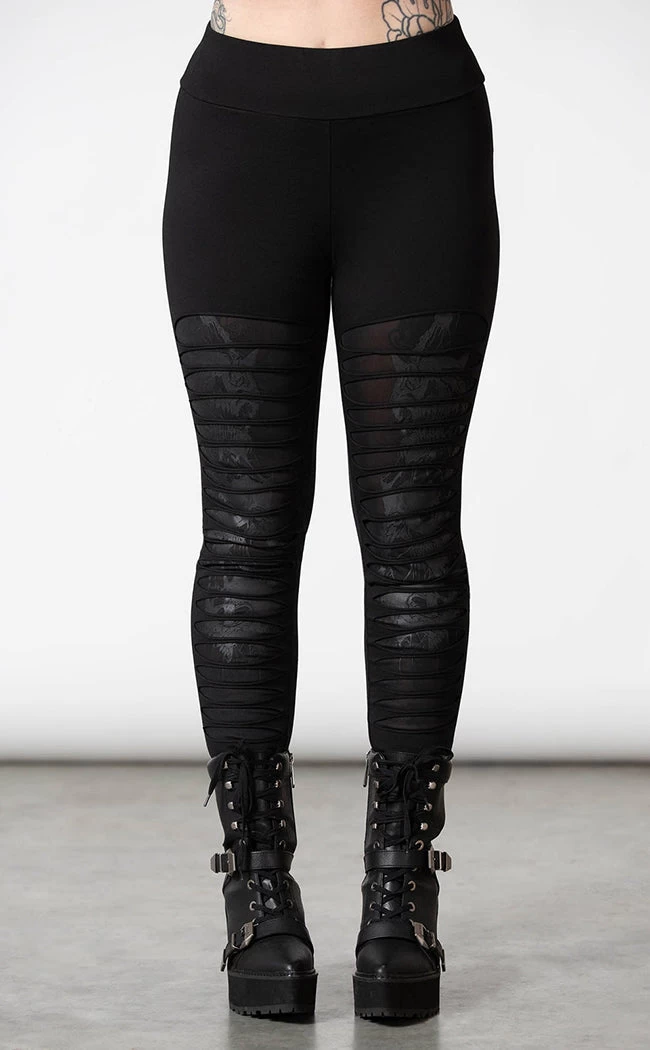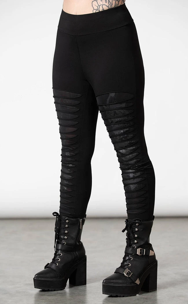 Show off those killer legs in the Assent Leggings! Softs, stretch cotton is slashed to hell and back, revealing statement stretch mesh with a black-on-black print. A high, wide waist band ensures a comfortable fit while making you look fit as hell.