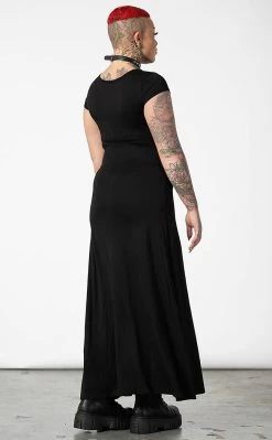 Let ’em have it in the Bellow Maxi Dress! This witchy wonder is made with soft, stretch cotton jersey and features a round neckline and cap sleeves. The black on black print showcases a screaming goat demon along with the Killstar logo in metal font.