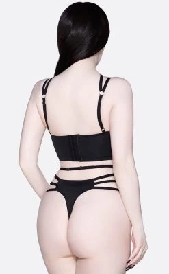 Feel yer inner power in the Cage Effect Bra! The soft fabric stretches for a comfortable and flattering fit. Seductive straps snake across the chest for a unique harness effect and the chest features a unique undercage detail.