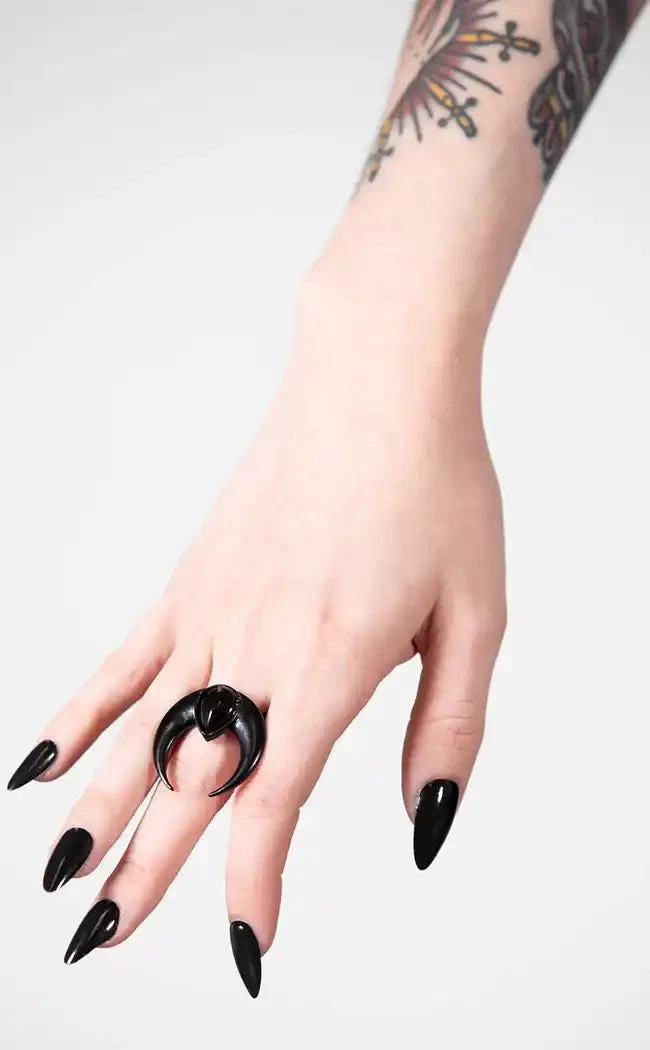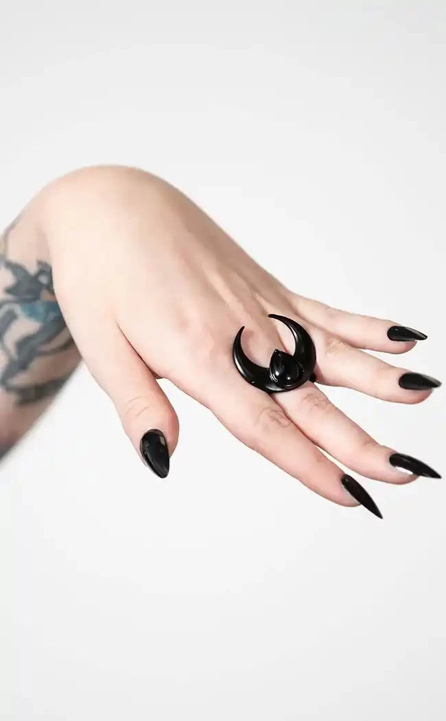 - Statement black metal ring.