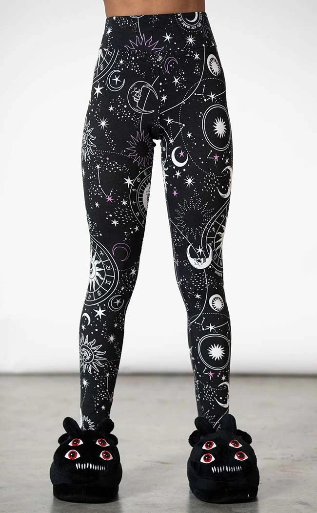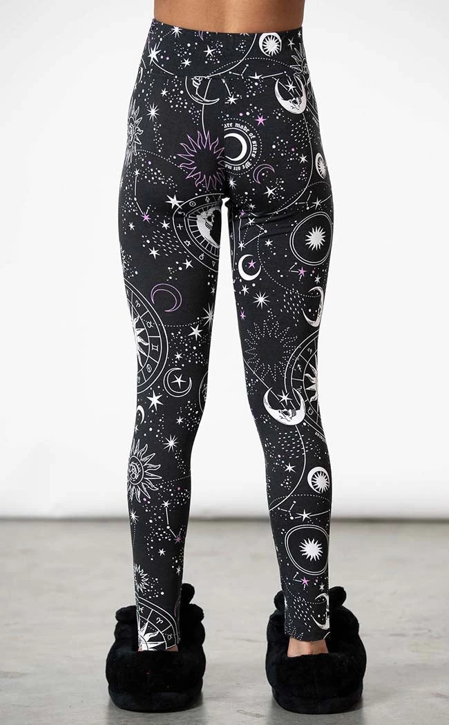 The Galaxy Lounge Leggings will have you snuggling up with the stars! Super soft, stretch fabric is printed with a custom galaxy print, forming a high waist with an elasticated band for the perfect comfort fit.