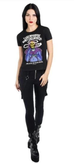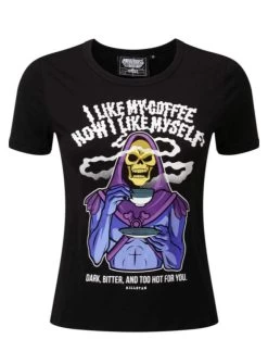Classic ringer topĀ in soft-touch cotton jersey for comfort and fit,Ā round neckline,Ā andĀ a vivid graphic print on chest featuring Skeletor with his morning coffee. An ideal day-to-day piece to add a splash of colour!