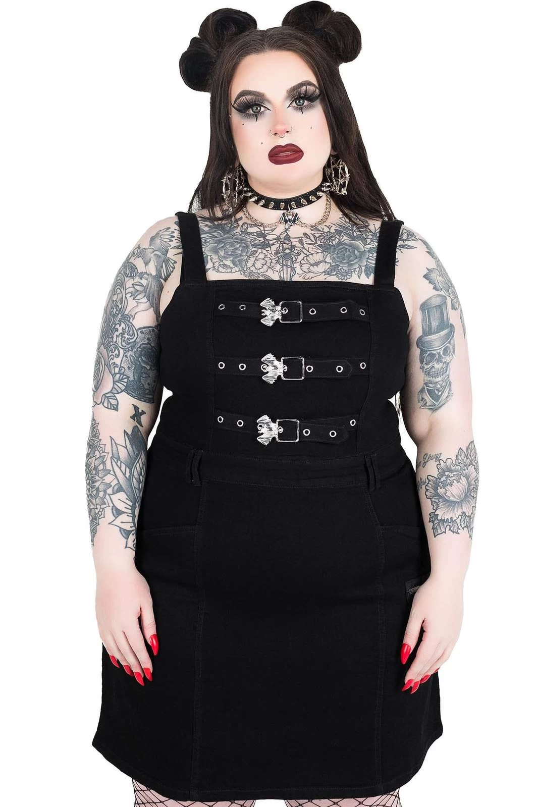 The ‘Dark Shadows’ dress will tick all yer boxes; constructed of super-soft stretch fabric for a flattering yet comfortable fit – featuring buckles adorned with bats, zip detail, think shoulder straps, and zip back. Easy to dress up or down depending on your mood/moon.