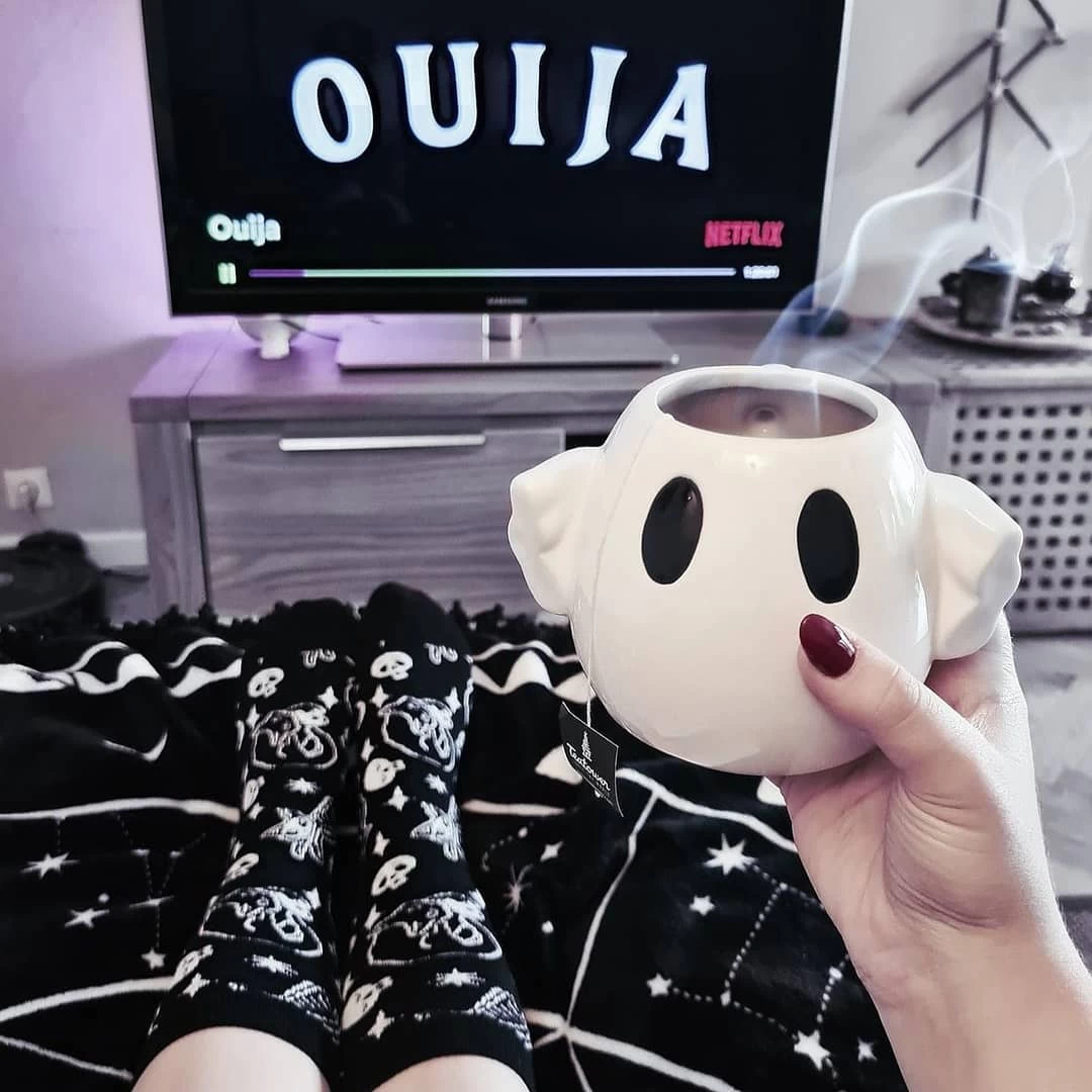 Regardless if you’re a coffee fanatic, tea enthusiast or just addicted to hot cocoa – this mug will ensure you always keep yer black soul content. In a ghost shape with a glossy white finish and large black eyes.