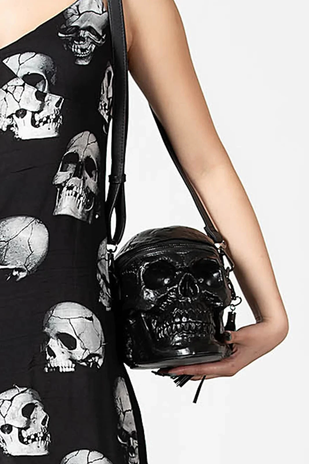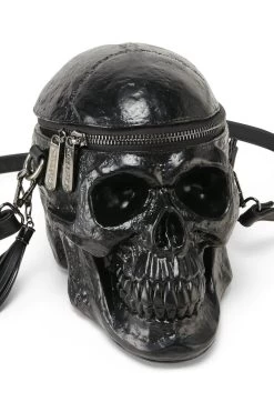 Obsessing about skulls since forever? The ‘Grave Digger’ handbag is yer creepy must-have – large human skull handbag – with intricate detailing, zip opening, long shoulder strap and detachable tassel detail. All Hail the Halloween Queen!