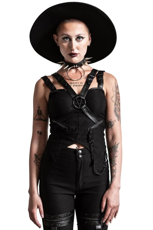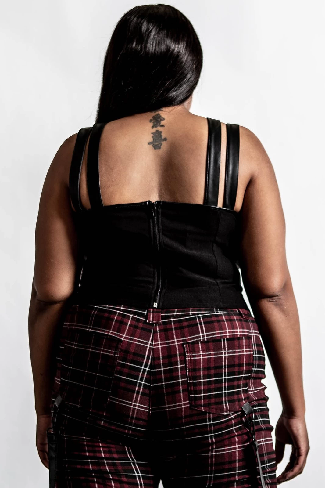 I wasn’t born to blend in… Stand out in pure punk style with the ‘Jaded’ strap top. Made using a soft-touch fabric with just enough stretch for a body huggin’ fit! No detail has been spared – seductive low neckline, striking body harness detail, detachable chain and pentagram hardware. You’ll be partying all day and all night in this stand-out piece.