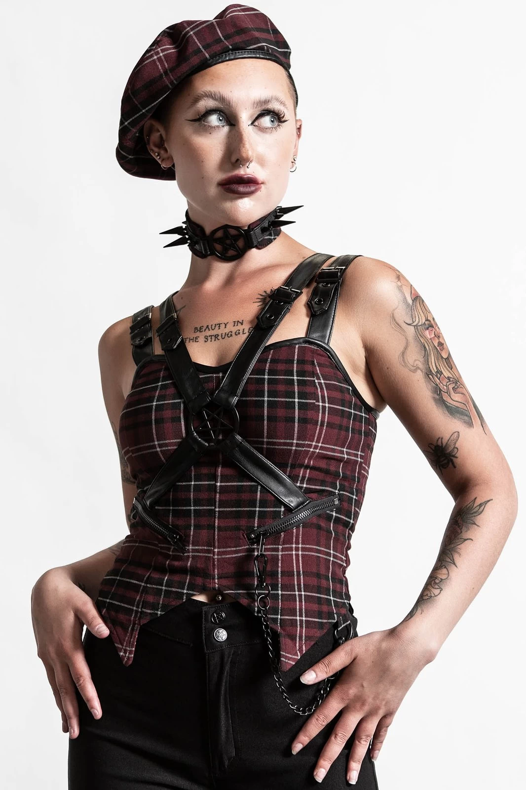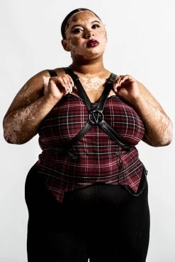 I wasn’t born to blend in… Stand out in pure punk style with the ‘Jaded’ strap top. Made using a soft-touch fabric with just enough stretch for a body huggin’ fit! No detail has been spared – seductive low neckline, striking body harness detail, detachable chain and pentagram hardware. You’ll be partying all day and all night in this stand-out piece.