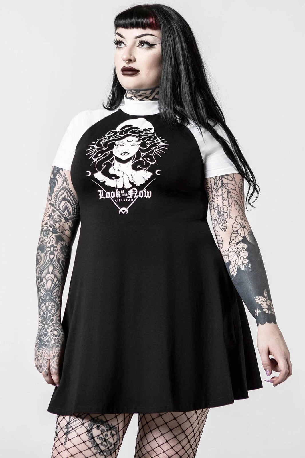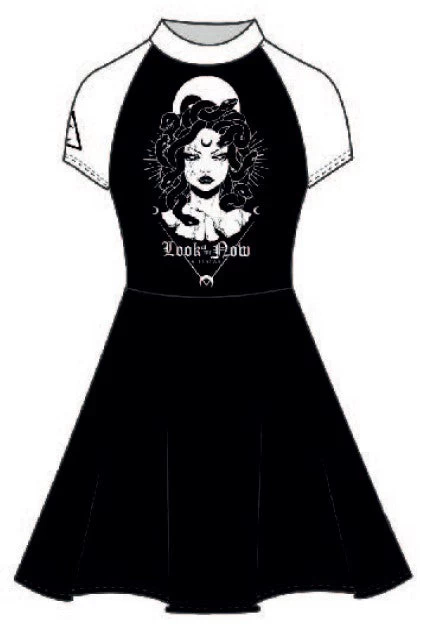 The must-have ‘Medusa’ Raglan dress is conjured from a super soft stretchy material. Features a bold print, white sleeves and neck, skater skirt and a fitted top! It’s a versatile piece that can be worn from dusk till dawn!