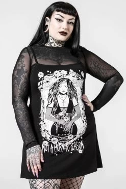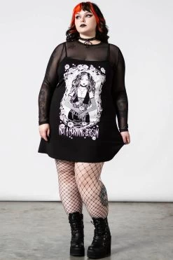 Our ‘Morning’ 2-Piece Dress has it all! Conjured from a super soft material for that ultimate comfortable yet flattering fit! Features a graphic print and thin straps over a mesh long sleeve top. A must-have piece that looks great with all your fav dark looks!