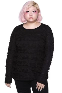 Invite yer demons in and let ’em stay a while. Give em’ something to talk about in the ‘Night Shadow’ Long Sleeve Top; manifested using a super soft-touch fabric, with a distressed finish, which stretches to perfection for a comfortable yet flattering fit. The purrfect staple piece to keep ya rockin’ round the clock.