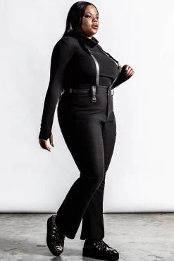 Looking for some perfect trousers to add to your wardrobe? The ‘Prophet of Doom’ suspender trousers come in a soft fabric, for superior comfort and fit – with statement suspender, zip accents, and some flare. Complete with super high waist, zip and buttons.