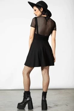 A perfect staple in any dark wardrobe – the ‘Suspend Me’ statement skirt is spun from a special super-soft fabric mix – for perfect comfort and flattering fit. Featuring a generously flared skater skirt with high waist and suspenders construction with buckles closure. With a long zip to the front, for easy on/off! An essential piece – easy to wear and goes with anything!