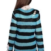 Channel some serious 90s grunge vibes with the ‘Tealaki’ soft-knit sweater, perfect for layering – or wear as a statement piece. Contrasting black and blue striped body; with extra long length so can easily be dressed up or down. With distress detailing and low neckline. Ideal for day-to-day adventures with yer besties or causing trouble with yer soulless-mate!