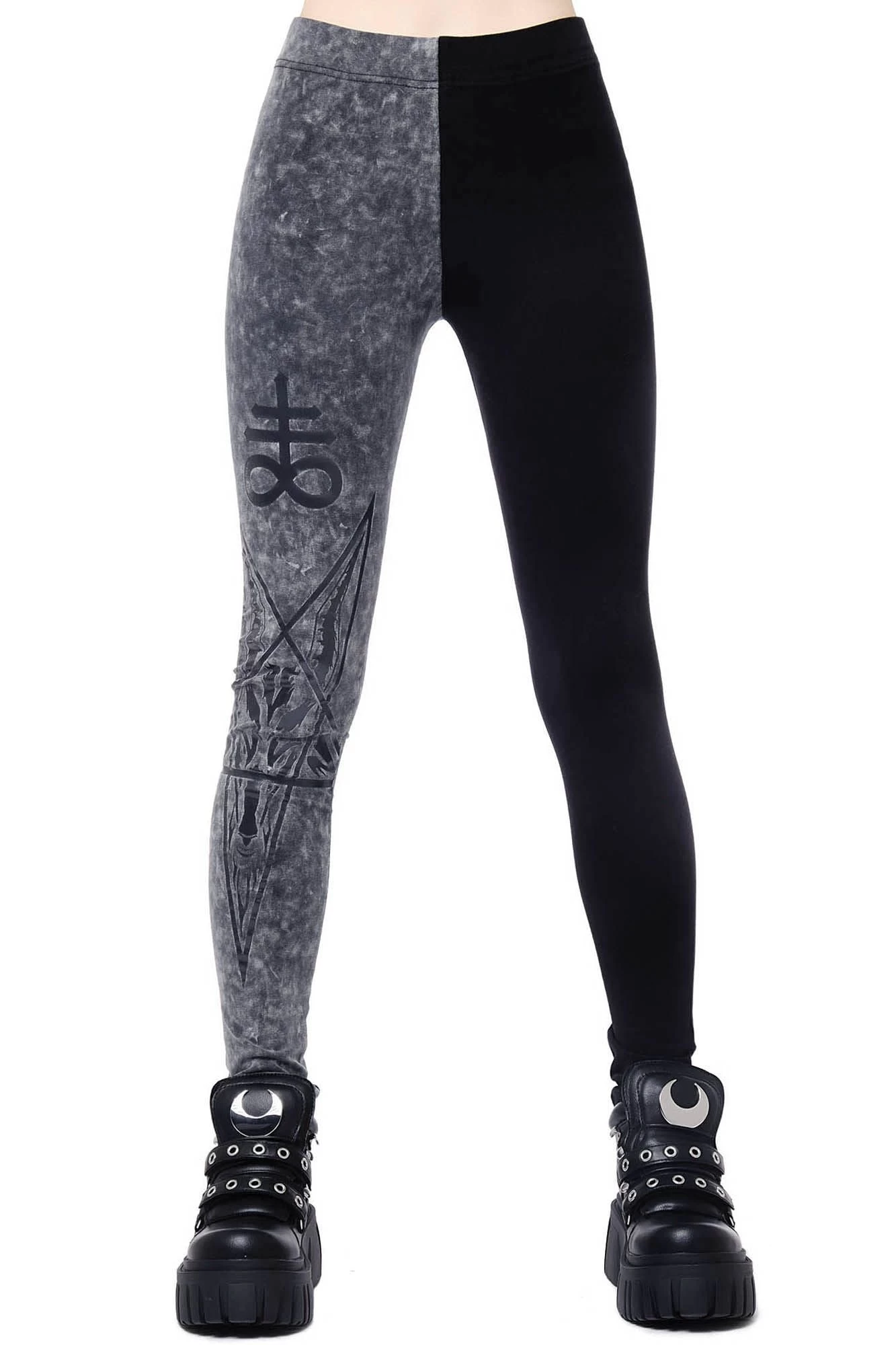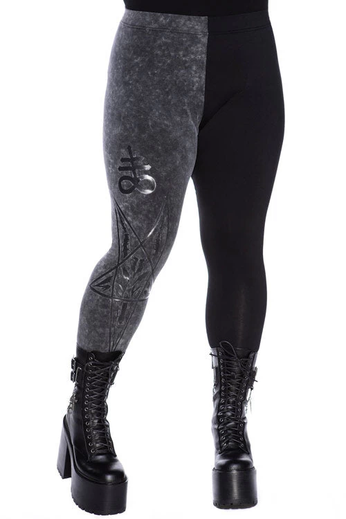 Do you dare enter the witch’s lair? With our ‘Two-Faced Witch’ leggings you’ll look bewitching all-day or all-night! In a soft cotton blend, with a wide waistband and graphic print on one leg + contrasting black on the other, you’ll be casting spells wherever ya go.
