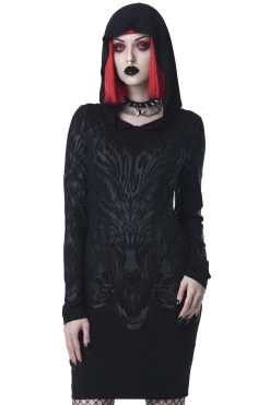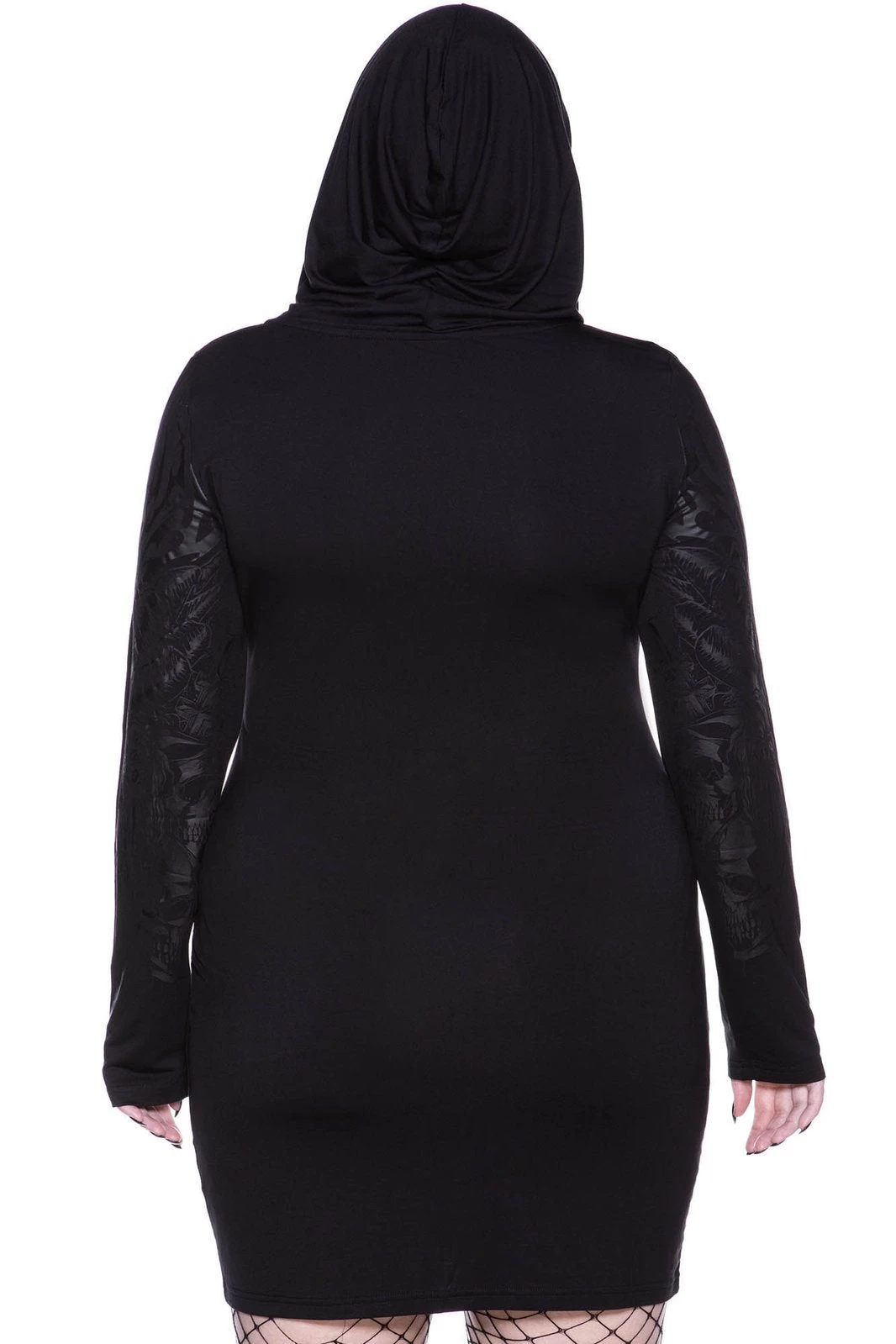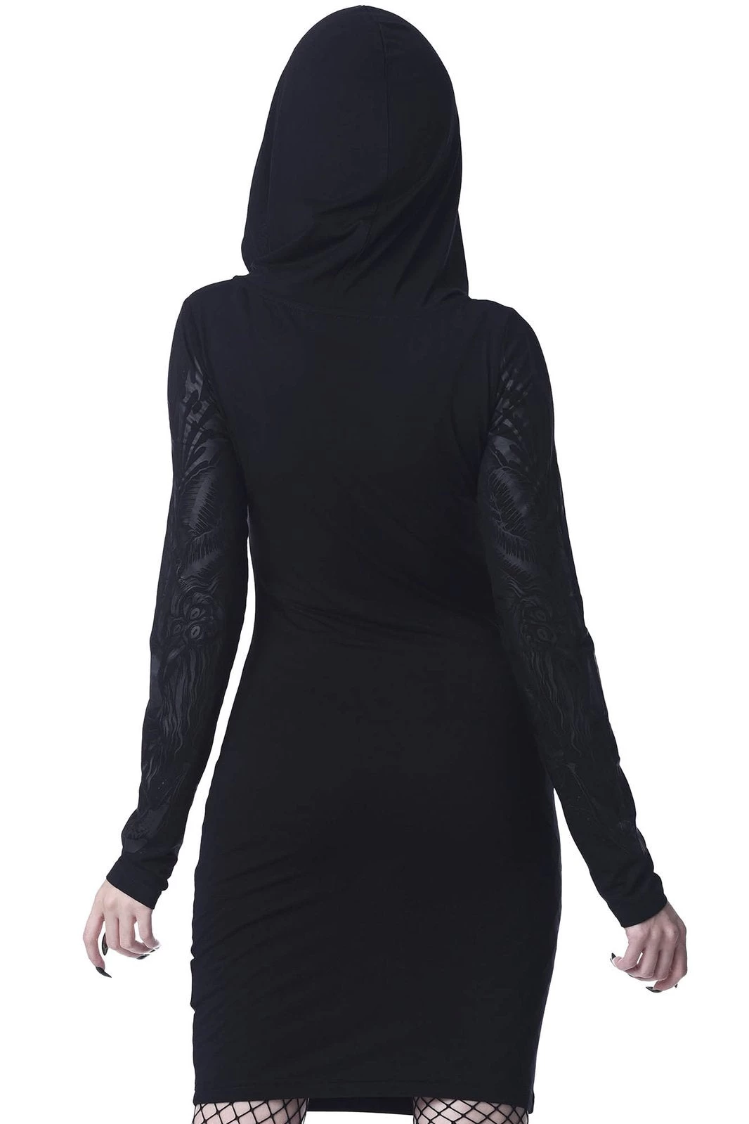 Channel yer inner goddess and look divine in the ‘Untamed’ hooded Dress. Conjured using a luxe soft-touch stretch jersey for a flattering and seductive fit. No detail has been spared; featuring an oversized hood, long sleeves and statement print. This dress is perfect for a date with the devil or a night out with yer coven. Oh-so versatile – perfect from dusk ’til dawn.