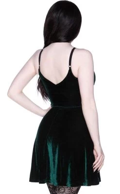 Perfect for casting spells of enchantment. This soft slinky and flowy dress is made from the softest stretch velvet. It gives you the perfect flattering shape with tapered waist and flowing skirt. Hexagram strappy neckline feature gives it that extra dash of magic. Wear at midnight.
