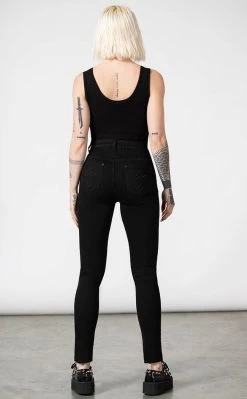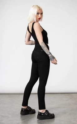Dress for every kinda ritual in the Mortem Rib Top! Soft, stretch fabric is ribbed for yer pleasure, forming this crop tank with a zip in the neckline topped with a pentagram pull.