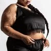 Model 2 is 5 ft 4″ and wears a size 3XL.