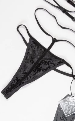 Ger yer midnight magic on with the Sleepin’ Curse panty! This G string comes with sexy accent hip straps and gorgeous burnout velvet to have you truly feeling your witchy self.
