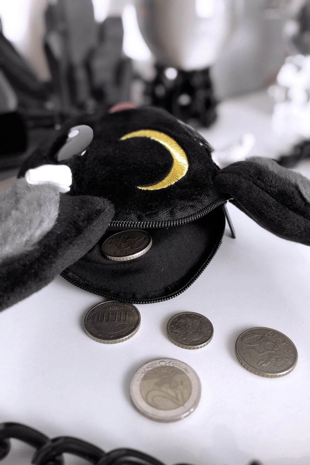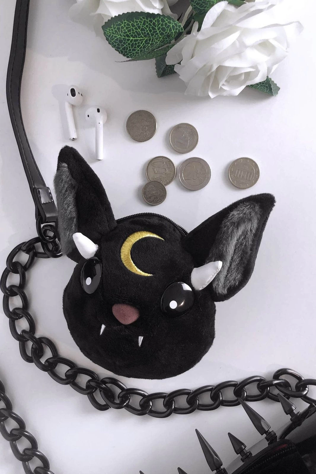 Keep yer money where ya can see it with our ‘Vampir’ coin purse; in a soft faux-fur material with adorable cartoon eyes, large 3D ears + horns, embroidered moon and zip closure. The cutest purse ever!