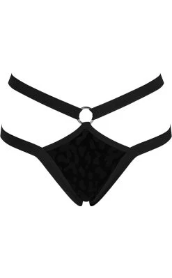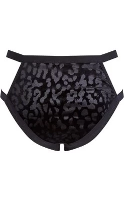 Break hearts and take over minds in the Wicked Game Panty! Soft, stretch velvet is embossed with a black-on-black leopard print, framed by high stretch hip straps and metal hardware.
