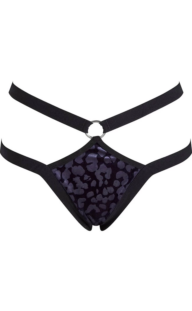 Break hearts and take over minds in the Wicked Game Panty! Soft, stretch velvet is embossed with a luxe plum purple leopard print, framed by high stretch hip straps and metal hardware.