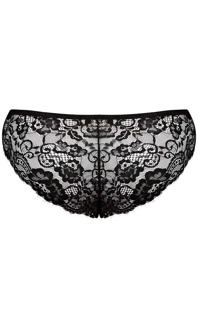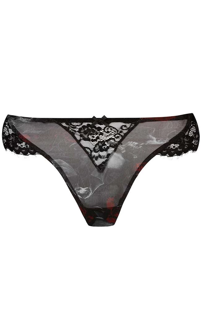 Lay yerself down in a bed of roses! The Wild Rose Mesh Panty is made from super stretch mesh, printed with a wicked motif of roses, skulls and bats. The panty is trimmed with luxe mesh panels and the gusset is lined with cotton.