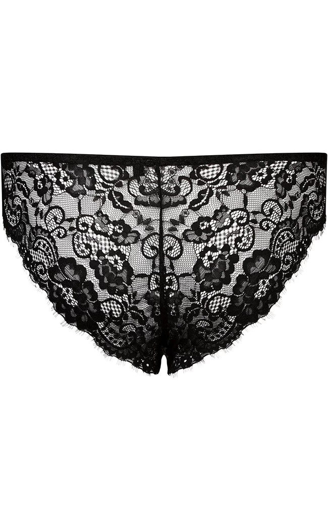Lay yerself down in a bed of roses! The Wild Rose Mesh Panty is made from super stretch mesh, printed with a wicked motif of roses, skulls and bats. The panty is trimmed with luxe mesh panels and the gusset is lined with cotton.